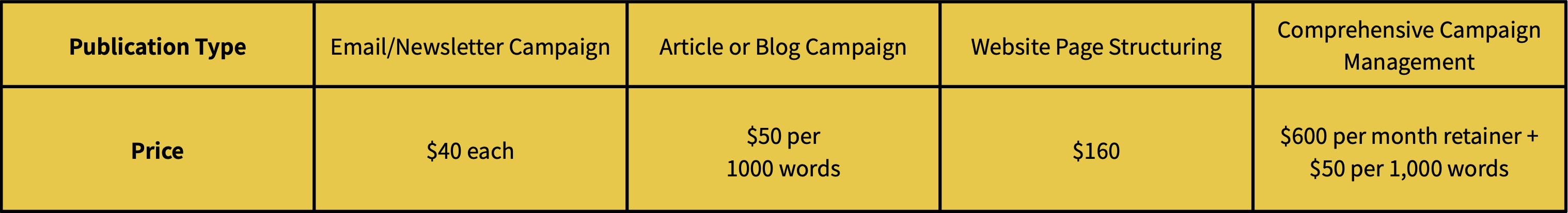 If every article is SEO optimized with a key phrase and/or hyperlinks, we charge more.
